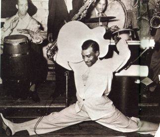 The great guitarist and Roy Plumb student, Lance Olson, passed on the video (above) and note (below) from the National Guitar Museum on T-Bone Walker (1910-1975), probably one of the last great blues guitar players to use a hollow-body, arch-top jazz guitar. T-bone, we miss you, RIP (I'm not sure why he got the name "T-bone" but his split below kind of looks like one)!